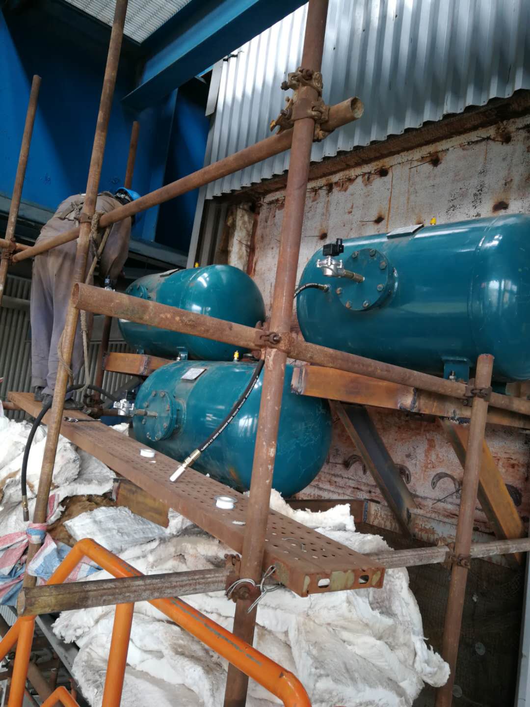 瀘州電廠脫硫改造項(xiàng)目設(shè)計(jì)空氣炮型號(hào)為KQP-B-300L,數(shù)量96臺(tái),噴嘴口徑為108耐高溫鑄造鴨嘴形噴嘴,配置控制箱為自動(dòng)不銹鋼雙開門,配套單向閥,油水過濾器。我公司與河南翔龍工程集團(tuán)有限公司(空氣炮安裝),受現(xiàn)場(chǎng)空間限制空氣炮噴管加長(zhǎng)5米到6米左右。安裝完成后現(xiàn)場(chǎng)調(diào)試一次驗(yàn)收合格。